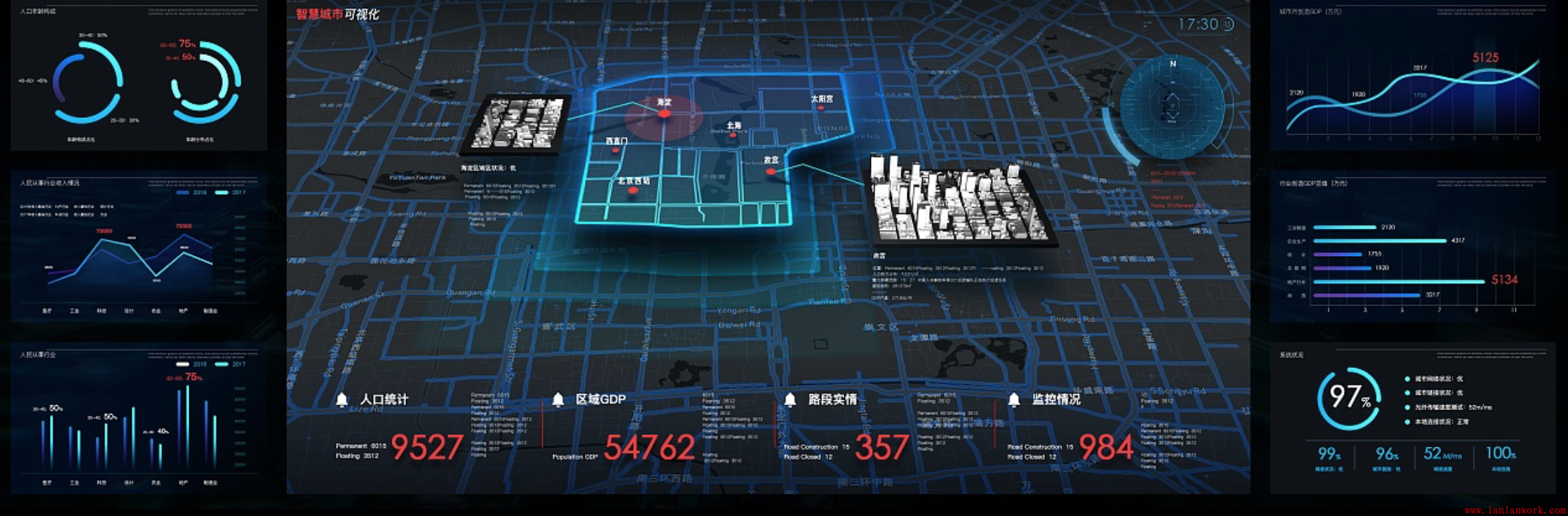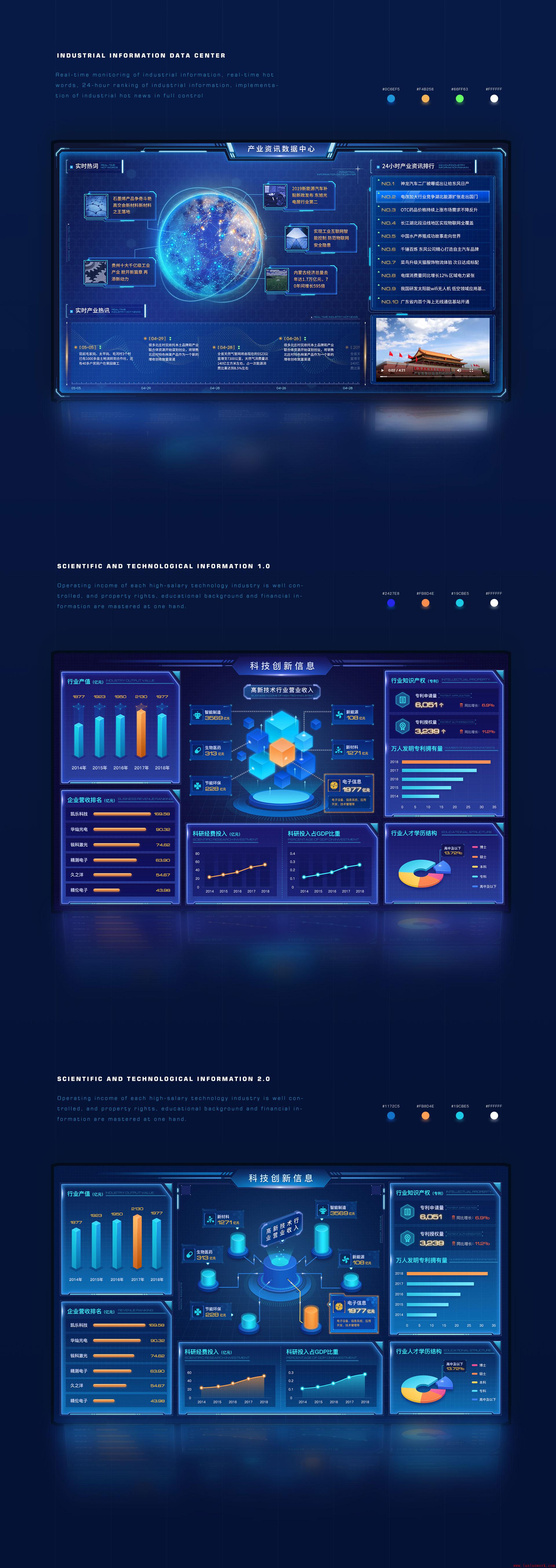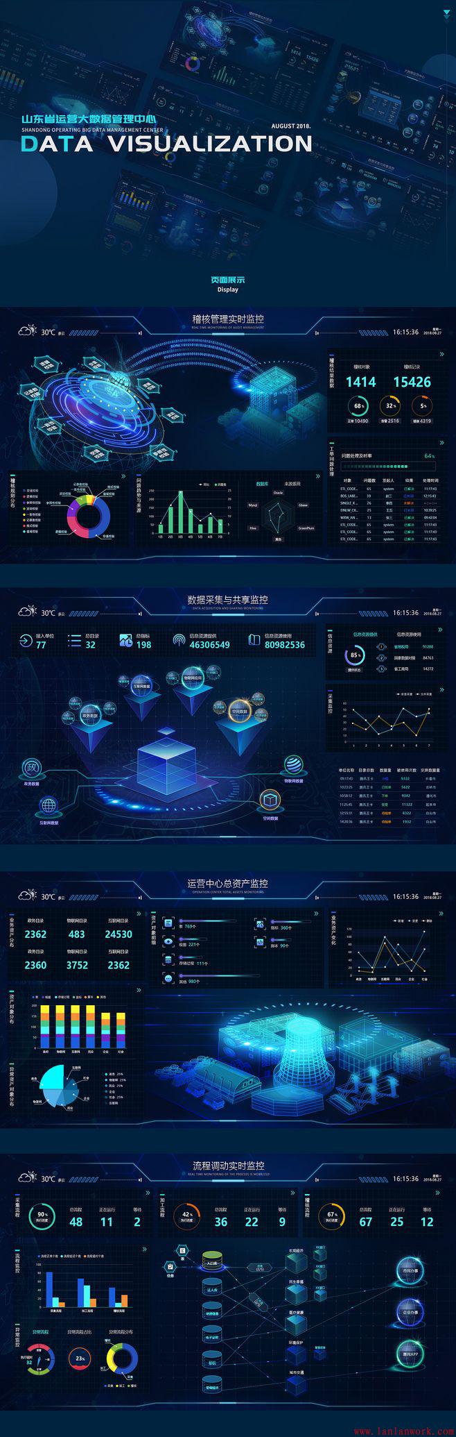 如今大數據產業正在超出我們的想象悄然發展,而隨著大數據時代的到來,越來越多的公司開始意識到數據資源的管理和運用。今天就給大家介紹一些可視化大屏的UI設計。