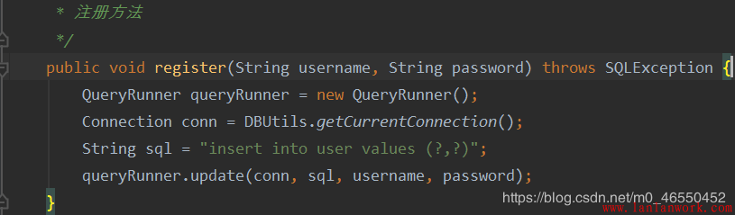 事實上,有了登錄功能的實現,注冊功能的代碼與其都是大同小異的。最大的不同應該就是Dao層執行的操作不同
