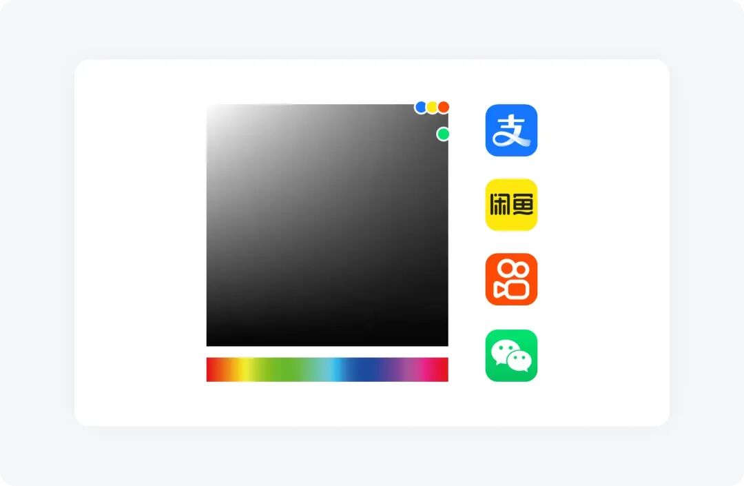 目前市面上那些成熟產品的配色,都會有這種規律,主色都基于拾色器右上角的位置。