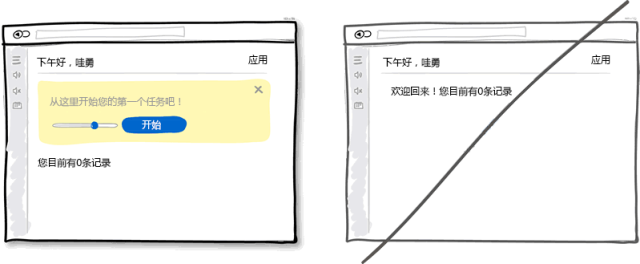 界面上經常需要呈現不同數量的數據,從0,1,10,100到10000+等。這里存在個普遍的問題就是:在程序最開始使用的0條數據到過度到有數據之前,該如何進行顯示界面。這也是我們經常忽視了的地方。當程序初始沒有數據時,用戶看到的就是一片空白,此時用戶可能不知道該進行哪些操作。利用好沒有數據的初始界面可以讓用戶學習和熟悉如何使用程序,在程序中創建數據。力臻完美永遠是我們追求的目標,界面設計也不例外。
