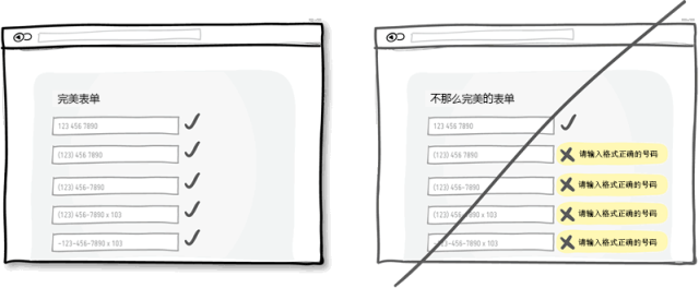 對用戶輸入的數據,盡量放寬限制,包括格式,大小寫什么的。這樣做可以更人性化一點,也使得界面更加友好。一個再恬當不過的例子就是讓用戶輸入電話號碼的時候,用戶有很多種輸入方式,帶括號的,帶破折號的,帶空格的,帶區號和不帶區號的等等。如果你在代碼中來處理這些格式的問題,代價也只是你一個人多寫幾行代碼而以,卻可以減少無數用戶的工作量。