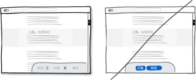 當你的程序廣為流傳,應該考慮下高級用戶的感受。人們總是試圖為一些重復性的操作找到更快捷的方法,快捷鍵就應運而生了。相比在界面上點來點去,快捷鍵無疑大大提高工作效率。一個好的例子就是現今流行于各個主流程序中的J(后退)K(前進)快捷鍵組合,比如在Gmail,Twitter和Tumblr中。按鈕固然好,但快捷鍵會錦上添花。