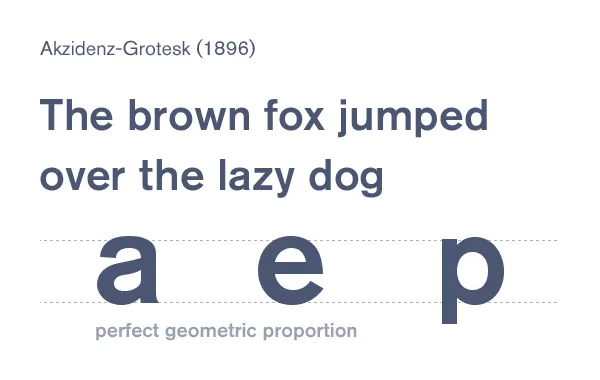 Akzidenz-Grotesk 起于1896年,受到很多字體的影響,從Baskerville, Garamond和Carlson中繼承了幾何比例的影響,將其發展到了新的一級。當代的Akzidenz-Grotesk字體遺傳于20世紀50年代后期,它已經是被擴大后的字體族,這些風格到后來啟發了更加現代的Helvetica,和Univers。