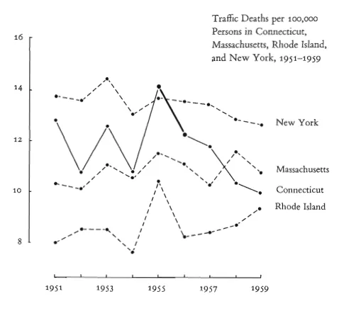 一個誠實的設計產品絕不能聲稱它并沒有的功能,絕不能吹噓。對于很多人來說,”設計”和”誠實”是兩個很難放在一起的詞,但是誠實對于設計來說太重要了,拿我們都相信的數據圖表來說,如果你覺得,一個數據或者一個圖表是最力的證據,是無可爭辯的,那你就錯了,圖表也可以撒謊。信息設計和數據可視化之父 Edward Tufte 在他的書“The Visual Display of Quantitative Information” 中說,當電視里的產品或者圖表說謊的時候,這個謊言就會被擴大千萬倍。如果紐約時報的報道插入了說謊的圖表,那么這個謊言就被擴大了幾百萬倍。書中有這么一個圖,圖中表示施行限速前后交通死亡數量的變化。