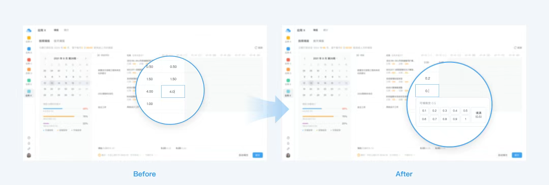 在業務改版時,我們的體驗設計師了解到舊版頁面信息錄入成本過高的問題,于是提出了數字鍵盤錄入數據的方案「用戶在原本手動錄入數據的基礎上,增加選擇錄入數據的能力,以此降低用戶錄入數據的操作負擔」。