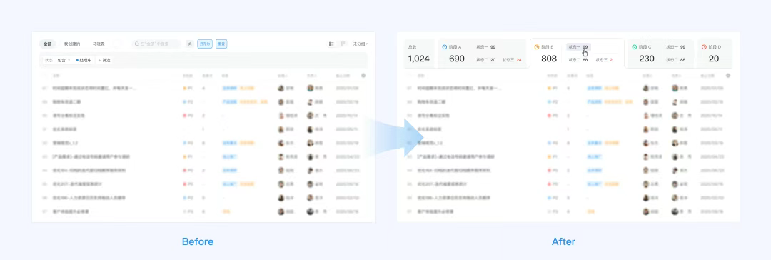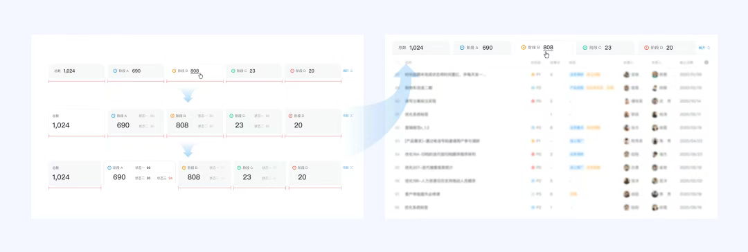 我們最初使用了數據可視化的看板來呈現各階段下不同狀態的概覽信息,但這只解決了數據概覽的問題,用戶還是需要點擊“詳情”才能跳轉至相應的頁面。