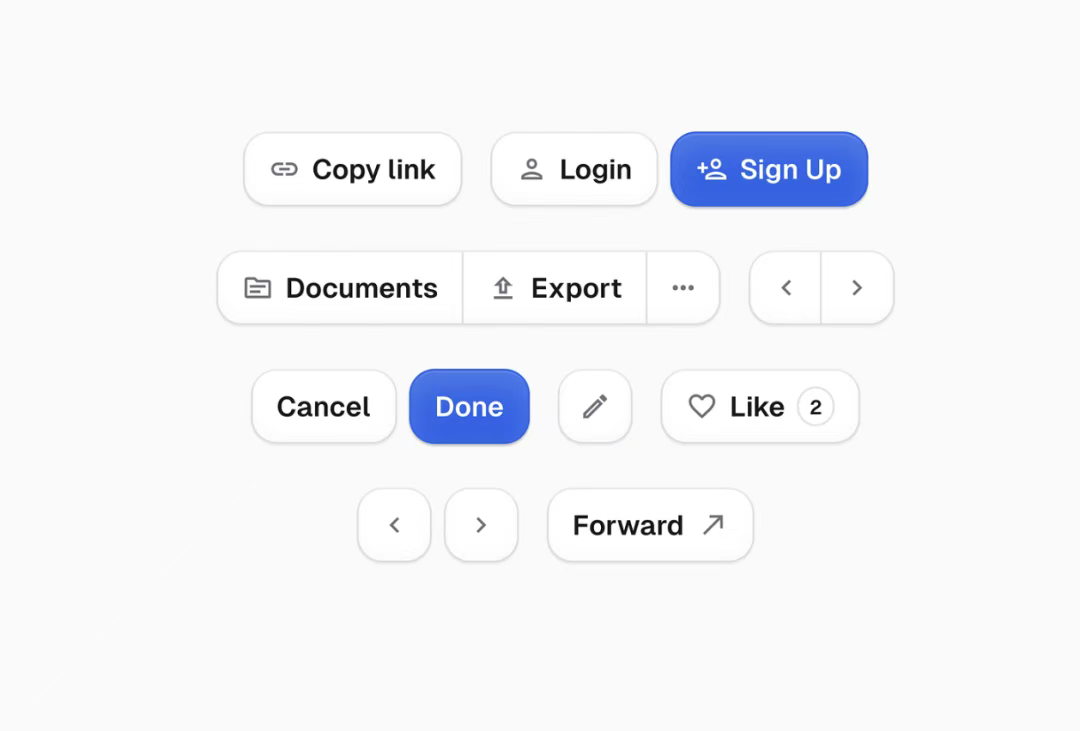 除了組合形式,最能讓button設計出彩的還是材質和風格。扁平風格簡潔明了,以純色或簡潔的圖標為主,適合現代簡約的界面。擬物風格則模擬現實中的按鈕,具有立體感和真實質感,能增加用戶的熟悉感。幽靈按鈕以透明或弱輪廓呈現,簡潔而不突兀,與背景融合較好。還有帶有動態效果的按鈕,如點擊時的變色、縮放等,增強交互性。此外,異形按鈕可根據特定主題設計獨特形狀,為界面增添個性與創意。