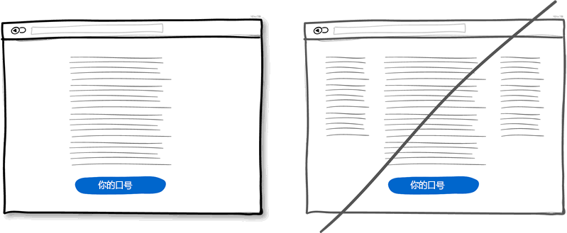 單列布局能夠讓對全局有更好的掌控。同時用戶也可以一目了然內容。而多列而已則會有分散用戶注意力的風險使你的主旨無法很好表達。最好的做法是用一個有邏輯的敘述來引導用戶并且在文末給出你的操作按鈕。