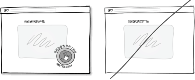 多次重復主旨口號這種方法適用于界面很長或者分頁的情況。首先你肯定不想滿屏刷出相同的信息,這樣會讓人生厭。但當頁面足夠長的時候這些重復就顯示自然多了并且也不顯得擁擠。所在在頁面頂部放一個按鈕然后在頁面底部再適當放個突出的按鈕的做法沒有什么不妥。這樣當用戶到達頁面底部在思考接下來該做什么的時候,你提供的按鈕就可以獲得一個潛在的合同或者即使用戶不需要你的服務這個按鈕也可以起到過濾的作用。