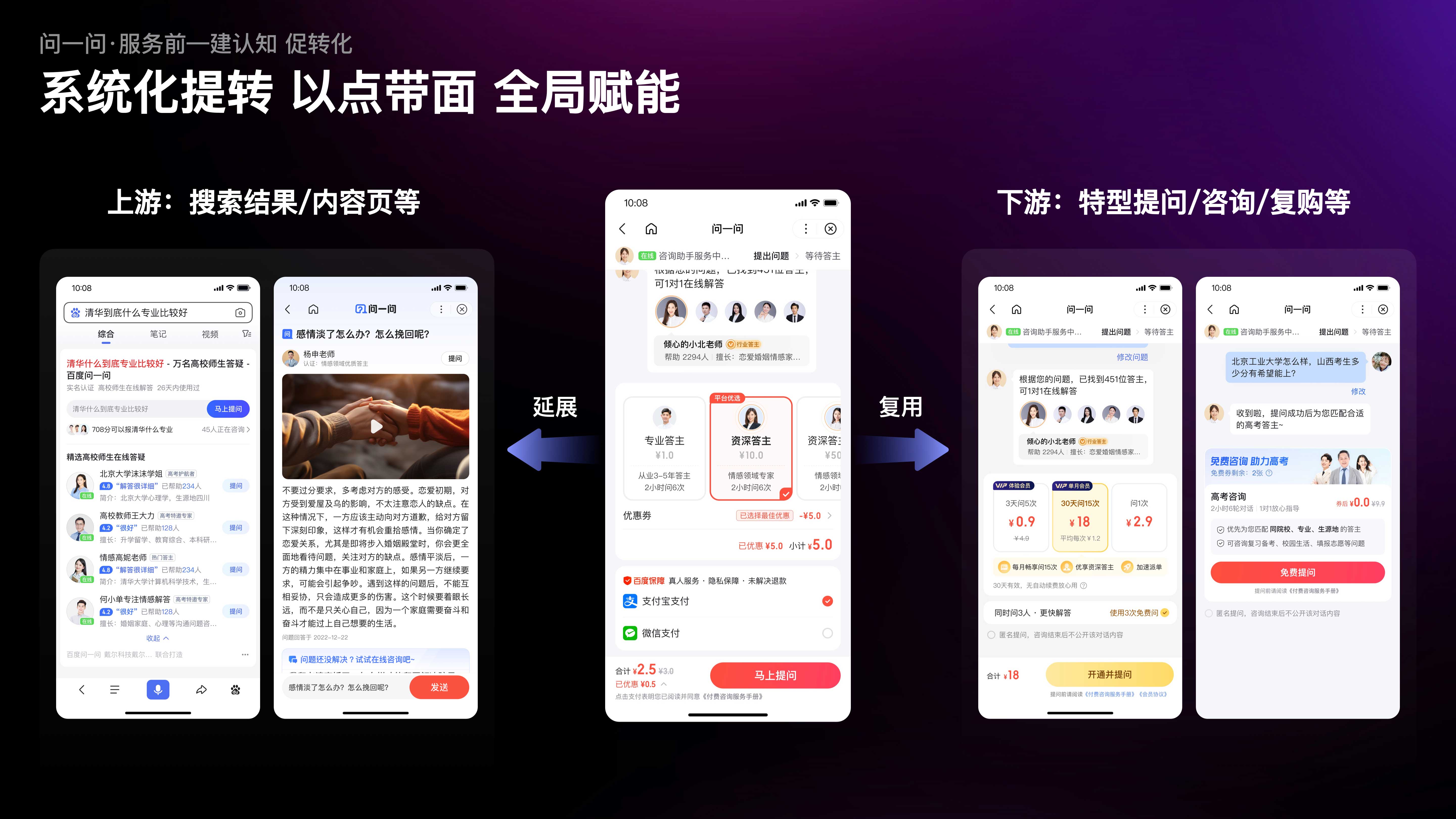“百度問一問”是一款由真人答主提供1對1實(shí)時(shí)在線咨詢的服務(wù)型產(chǎn)品,自2020年孵化成功已走過3年半的歷程。作為服務(wù)場域的建設(shè)者,我們的設(shè)計(jì)使命從初創(chuàng)驗(yàn)證階段的基建搭建,到規(guī)模擴(kuò)張期的提轉(zhuǎn)探索,升級為現(xiàn)階段的追求體驗(yàn)&收入雙線發(fā)展。