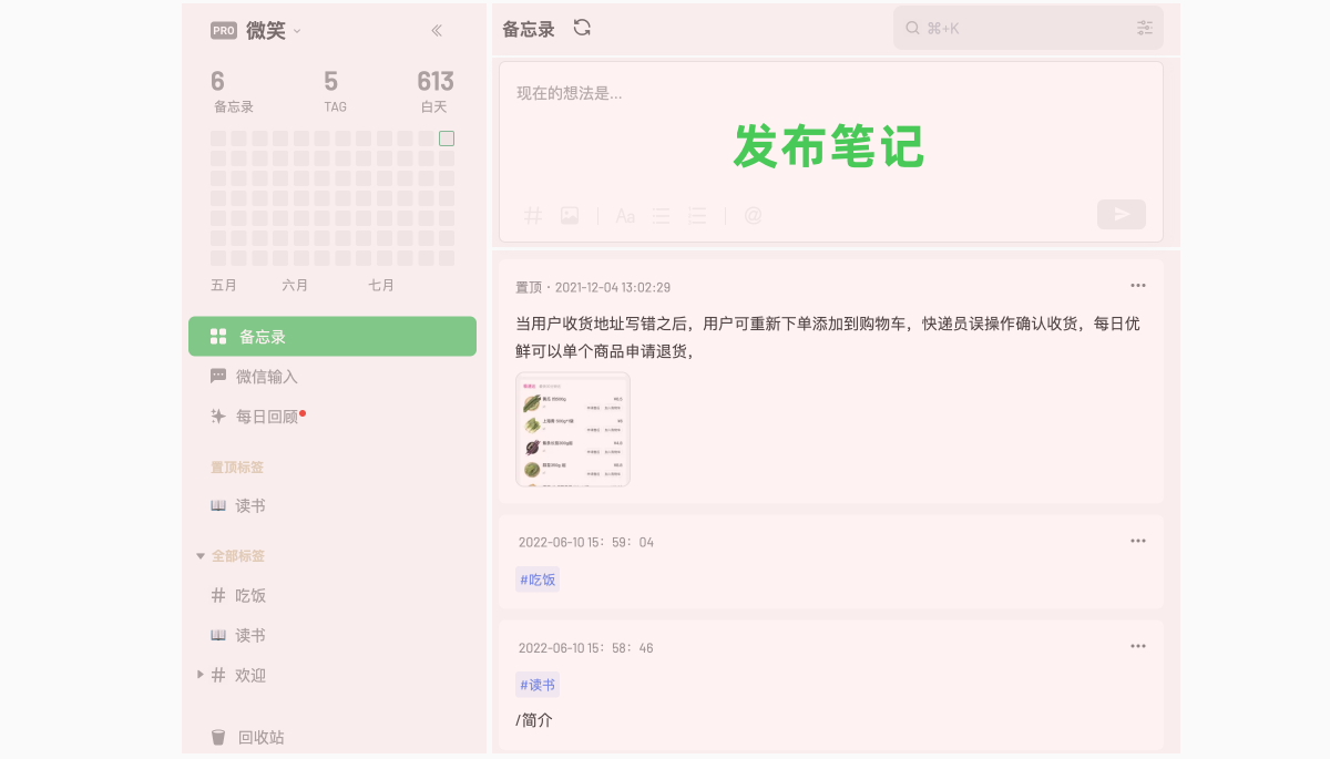 各平臺基本都有自己獨(dú)立的設(shè)計(jì)體系,有自己定義的組件和組件庫,學(xué)習(xí)組件要了解它分為基礎(chǔ)組件和業(yè)務(wù)/高級組件兩種類型。基礎(chǔ)組件是一種底層組件,例如輸入框、按鈕、單選框;其特點(diǎn)是比較獨(dú)立單一,通用性很強(qiáng),適應(yīng)各種業(yè)務(wù)場景;業(yè)務(wù)組件是一個基礎(chǔ)組件集合而成的大組件,也可以叫高級組件,是復(fù)合型的區(qū)塊組件,主要是針對解決業(yè)務(wù)問題;如下截圖是flomo筆記用用的網(wǎng)頁版本,以它的首頁為例;頁面按照左右結(jié)構(gòu)類型區(qū)分,可以定義為兩個大的業(yè)務(wù)組件,由淺入深,可以再細(xì)分,得到再定義更多的業(yè)務(wù)組件,這里,我以“發(fā)布筆記”的組件具體說明下,它是怎么組成來解決業(yè)務(wù)問題的;首先我們拆解下組成部分:文本內(nèi)容,工具按鈕(添加標(biāo)簽和圖片、文本編輯、快速引用等三種類型),發(fā)布按鈕。用戶發(fā)布筆記的行為主要為文字輸入-內(nèi)容編輯-發(fā)布完成;結(jié)合用戶行為和組件設(shè)計(jì),解決了用戶輸入文本內(nèi)容,給筆記歸納,增加圖片,修改文本樣式,快速引用,最終進(jìn)行發(fā)布的問題。產(chǎn)品在迭代過程中,我們會發(fā)現(xiàn)更多的需求,業(yè)務(wù)組件就要通過再優(yōu)化幫用戶解決實(shí)際問題。