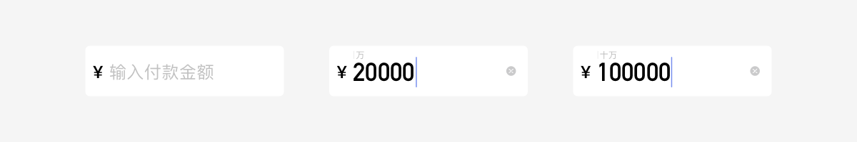 無金額輸入時,輸入框能給予用戶提示,這是比較常見的輸入框組件設(shè)計(jì),預(yù)置提示文本;