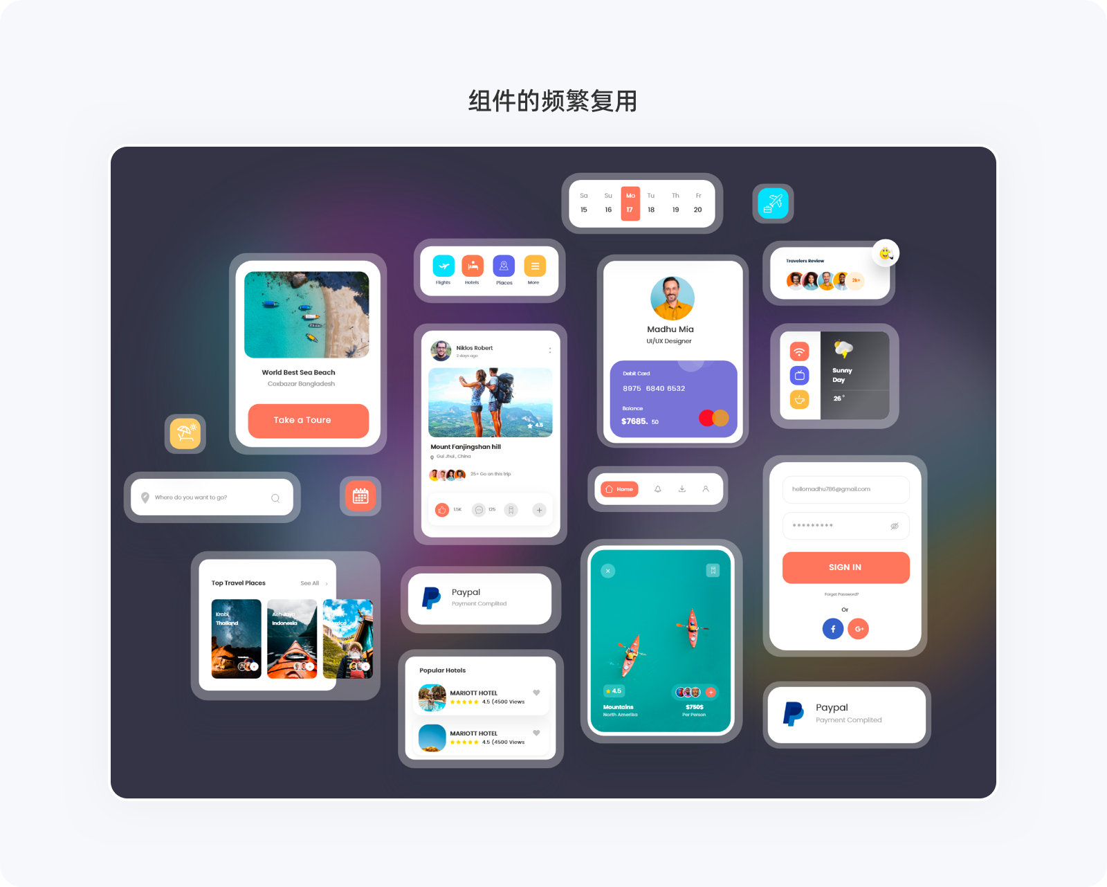 在同一個產品中,應使用一個主題色貫穿整個設計,作為強調重點的存在,然后再選擇1~2個輔助色作為點綴使用。不要添加太多花里胡哨的顏色,增加額外的視覺噪音,尤其是在B端設計中,克制顏色的使用能讓整體看起來更加簡潔有層次感。