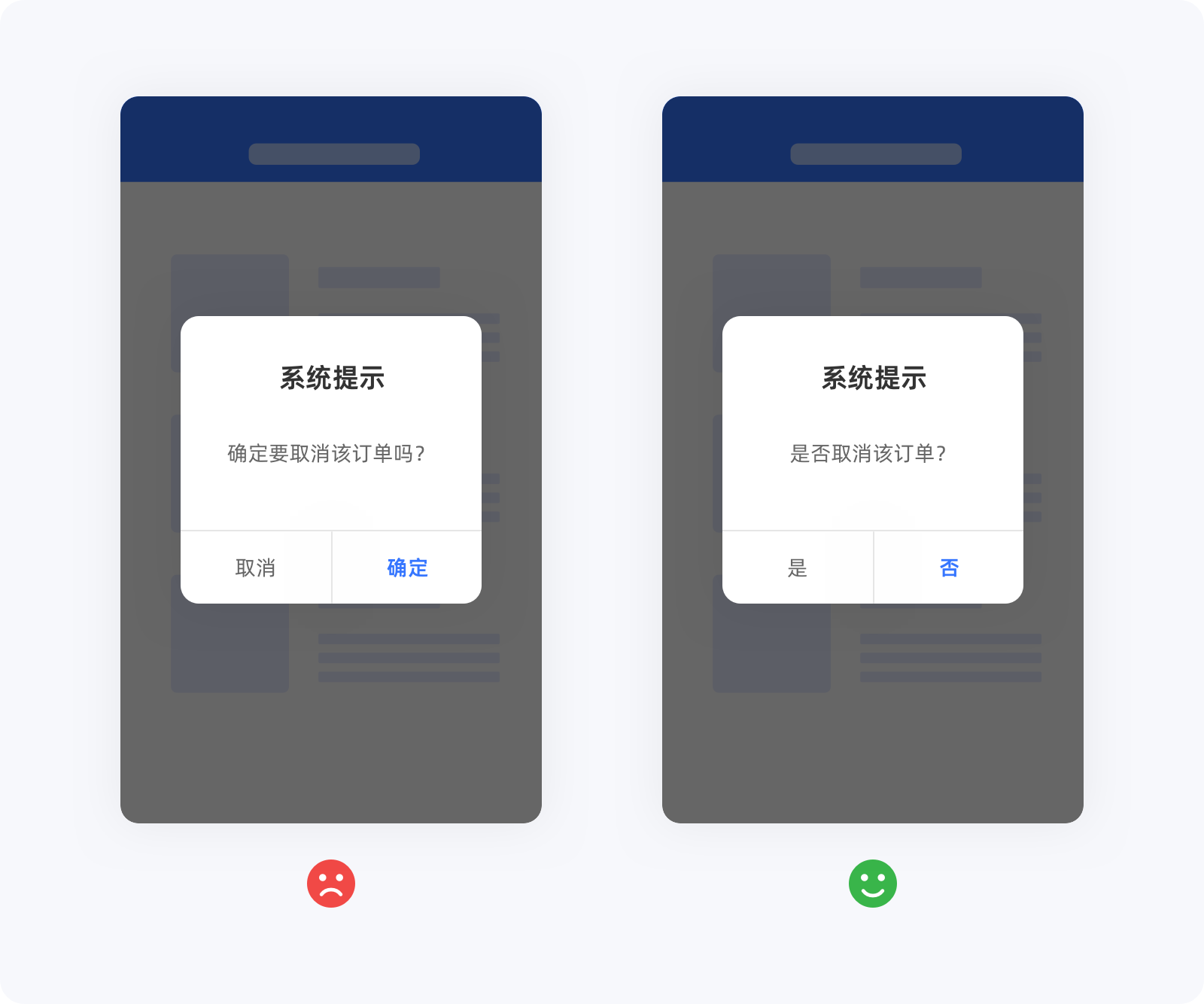 用戶的每一次操作及信息的接收都是與產品的一次交流,在對話方面,不應該使用多重否定、較長的定語或含糊其辭的描述,以免用戶出現認知偏差導致理解上的錯誤,減少用戶出錯率最直接的方法就是用通俗易懂的極簡話術與其交流。