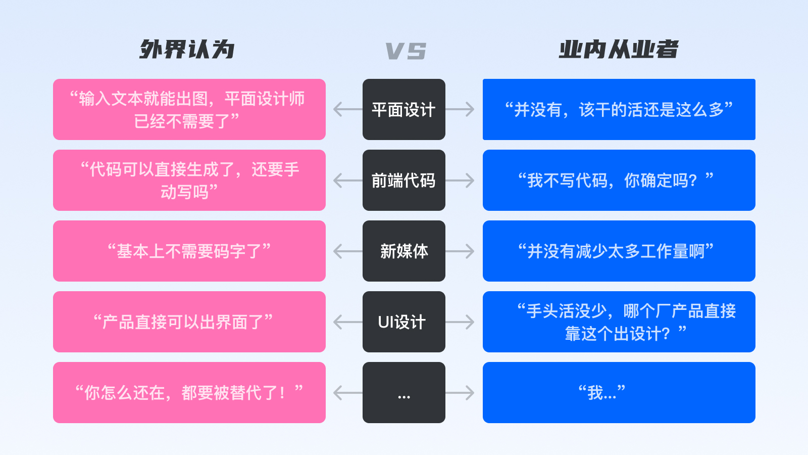 有個有趣的現象,不管是什么崗位,外界對AI的應用程度,總比行業從業者要“樂觀”很多,比如UI、前端崗位,感覺已經不太需要他們參與了。