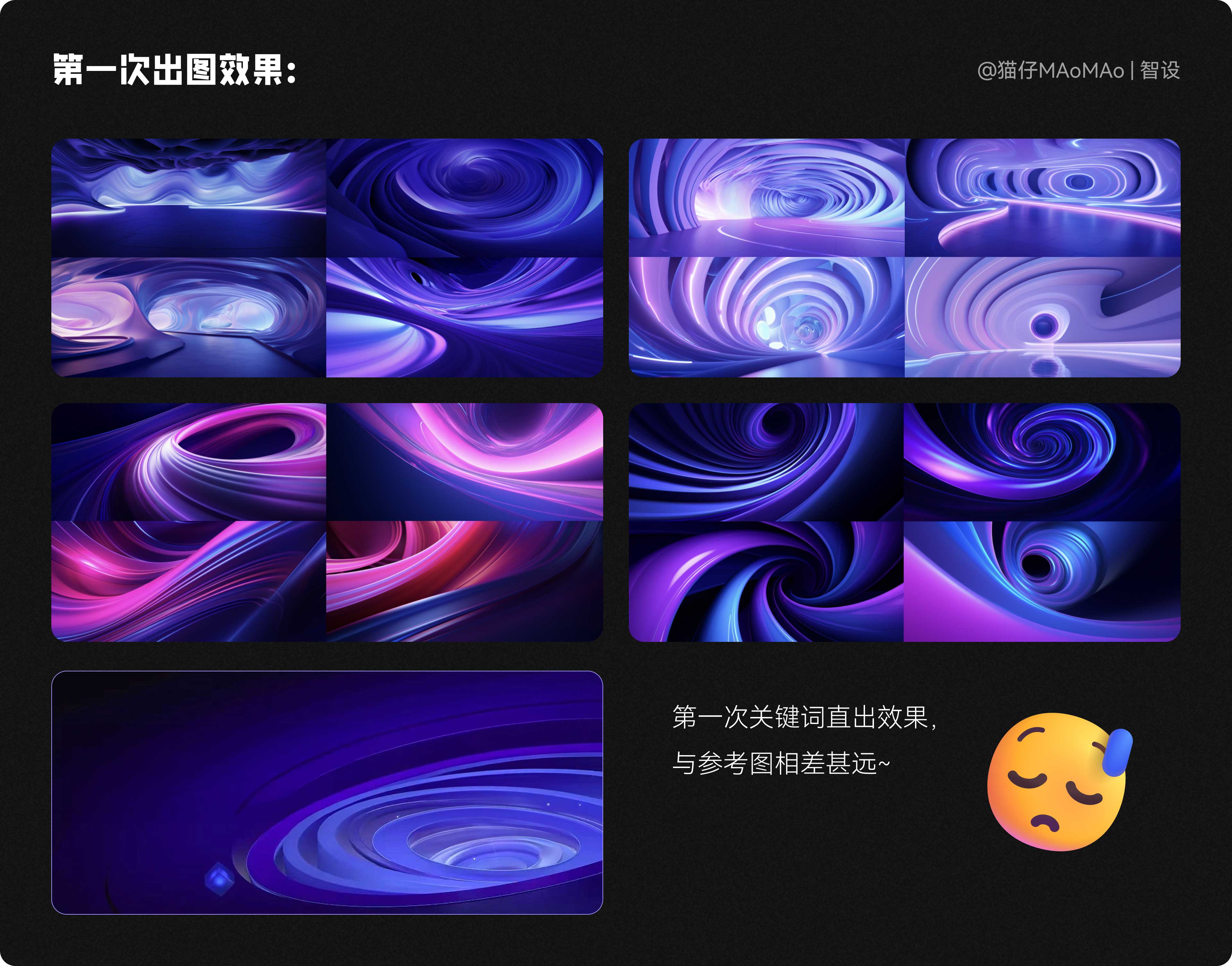 我們看到第一次關鍵詞直出的效果,并不理想,與我們的參考圖相差甚遠。
