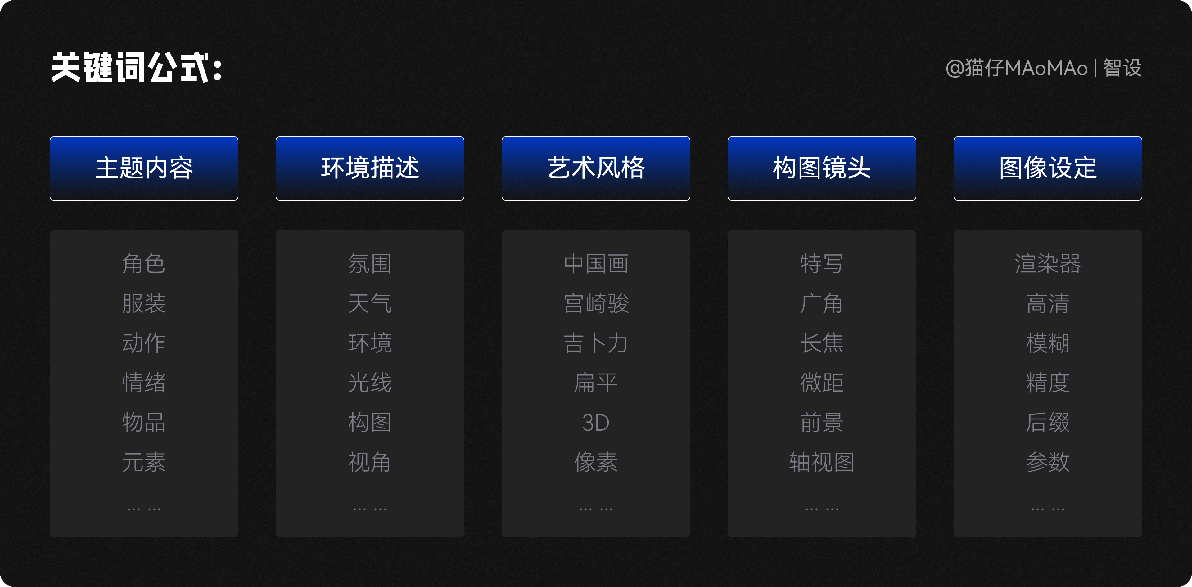 3D主視覺我們采用文生圖的方式制作,寫關鍵詞的基本公式參考下圖,具體寫關鍵詞時,需要靈活進行增減,然后不斷嘗試,直到出現(xiàn)自己滿意的效果。