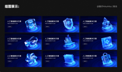 這一步考驗的是設計師的審美和手活,我們需要把背景和主視覺素材,進行視覺合成,其實也非常簡單:這里我定的主要色調(diào)是藍色+青色的光感,首先需要將色調(diào)整體統(tǒng)一;然后想要表現(xiàn)出玻璃質(zhì)感的通透,我們需要加上一些光感;最后文字排版出圖即可~