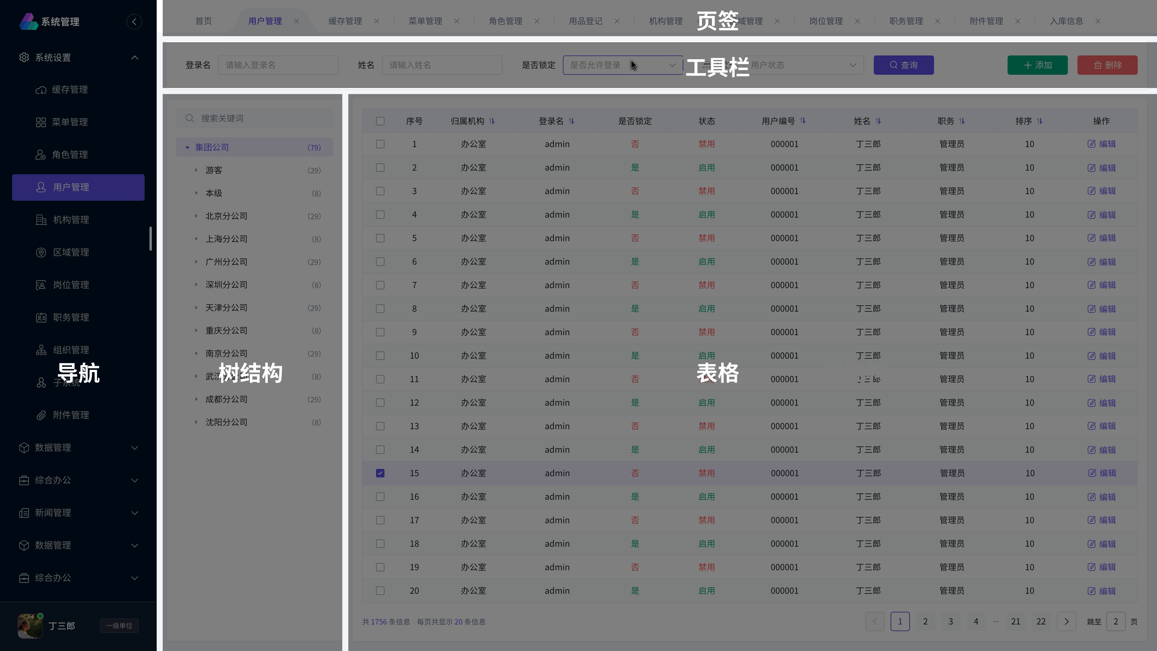 根據人的視線流和操作順序,將樹結構放置在表格左側,先幫助用戶定義表格的具體內容,后引導用戶進行表格內的操作