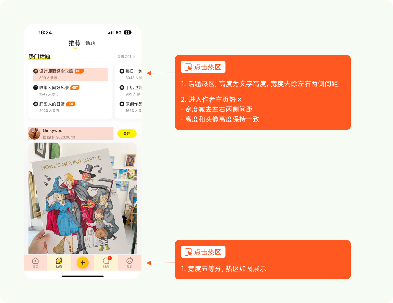 點(diǎn)擊熱區(qū)是指用戶在界面上最容易點(diǎn)擊的區(qū)域。可以標(biāo)注出點(diǎn)擊熱區(qū)的位置、大小和形狀,以便團(tuán)隊(duì)成員在實(shí)現(xiàn)交互時更好地考慮用戶體驗(yàn)和操作習(xí)慣。
