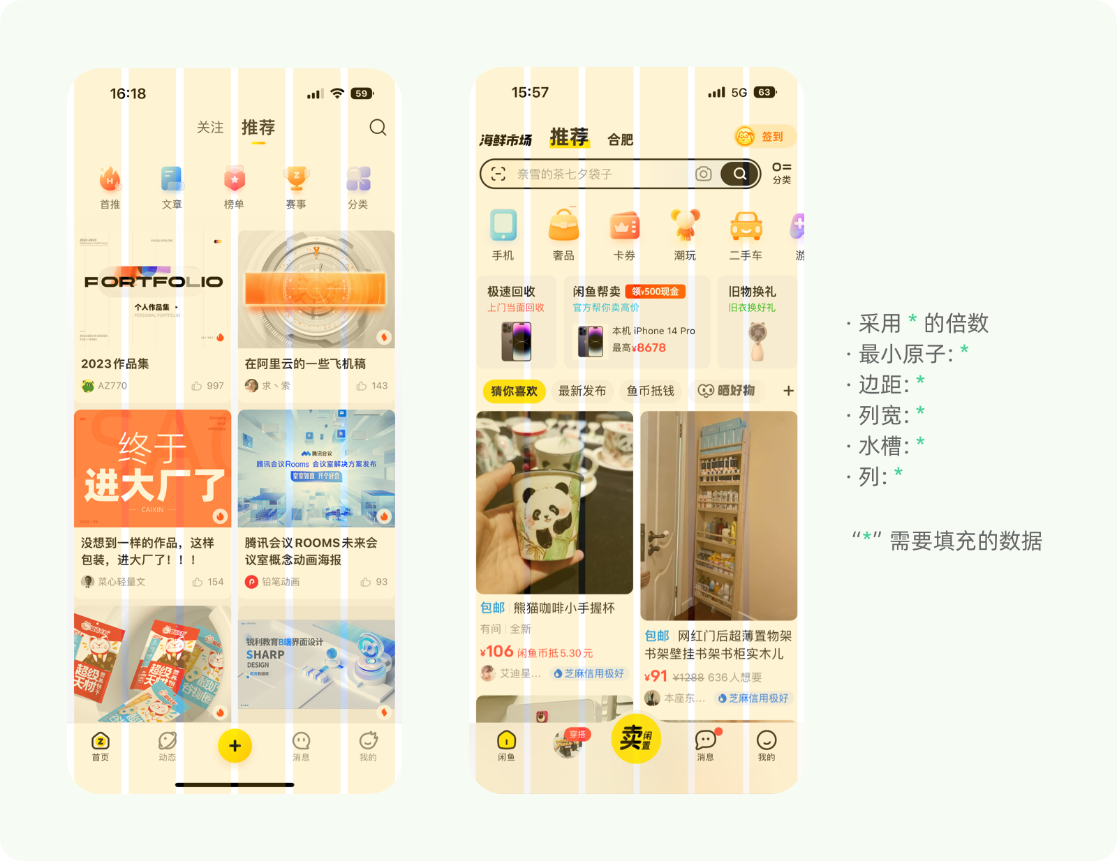 柵格的規(guī)則定義了一套底層的、統(tǒng)一的測量單位,當(dāng)設(shè)計(jì)團(tuán)隊(duì)內(nèi)對此達(dá)成共識時,可以避免因屏幕適配、比例換算產(chǎn)生的像素偏移,適配多種屏幕,提升設(shè)計(jì)稿件中元素屬性的一致性和規(guī)范化。