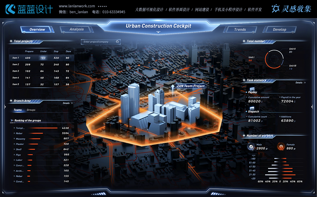 大屏界面的核心價值在于其強大的數據展示能力。因此,數據可視化設計是重中之重。設計師需要運用專業的圖表、地圖、儀表盤等可視化工具,將復雜的數據轉化為直觀、易懂的視覺元素。在設計過程中,要注重色彩搭配、圖形選擇和數據呈現方式的合理性,以確保數據可視化的準確性和美觀性。