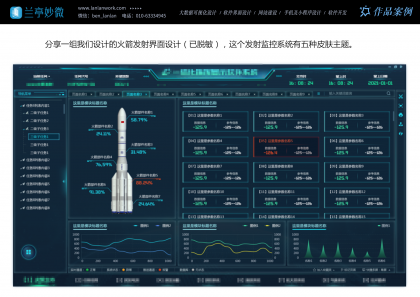也分享一組我們給某單位設計的火箭發射界面設計(已脫敏),這個發射監控系統有五種皮膚主題,分別應用不同的場景,簡約版、科技藍、軍隊應用、慶典重大時刻...