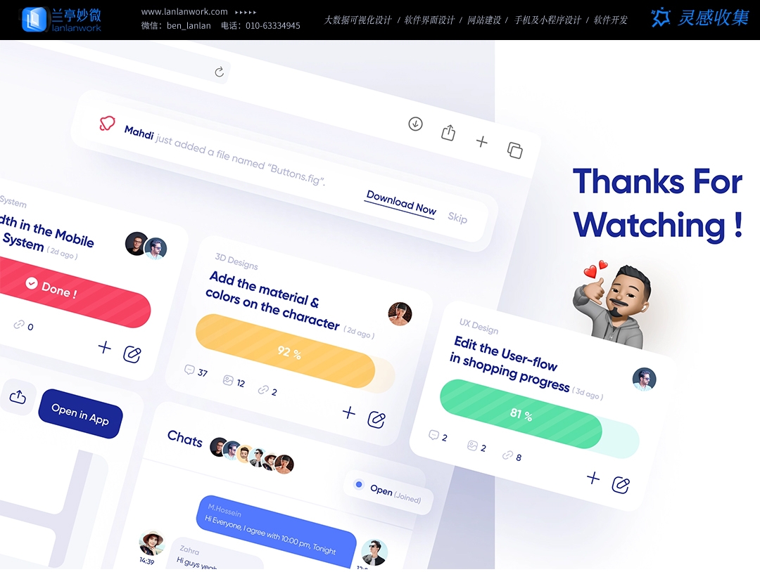 藍藍設計(www.izc.net.cn )是一家專注而深入的界面設計公司,為期望卓越的國內外企業提供卓越的大數據可視化界面設計、B端界面設計、桌面端界面設計、APP界面設計、圖標定制、用戶體驗設計、交互設計、UI咨詢、高端網站設計、平面設計,以及相關的軟件開發服務,咨詢電話:01063334945。我們建立了一個微信群,每天分享國內外優秀的設計,有興趣請加入一起學習成長,咨詢及進群請加藍小助微信ben_lanlan。