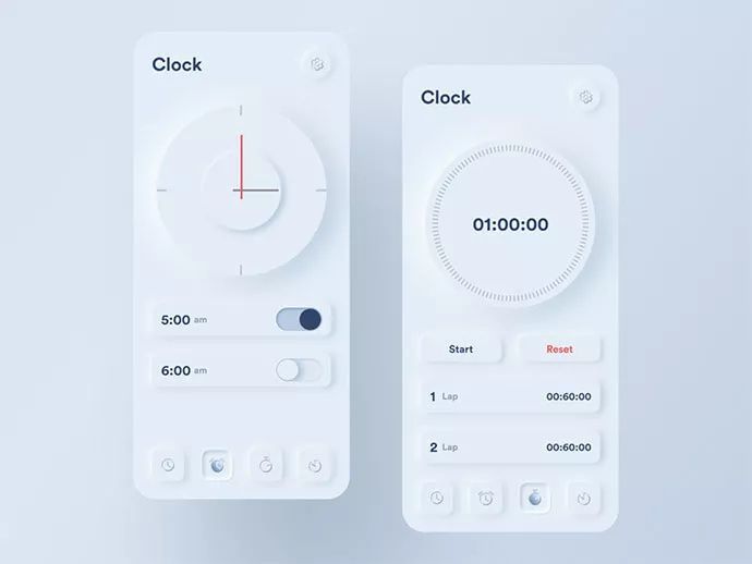 新擬態是一種介于扁平和擬物之間的視覺風格。它不像傳統擬物那樣強調真實質感,也不像扁平風那么極簡抽象,而是通過柔和的陰影和光源,營造出“半浮起、半嵌入”的界面效果。看起來像是元素從背景“擠壓”或“雕刻”出來的,質感細膩、有輕微立體感。