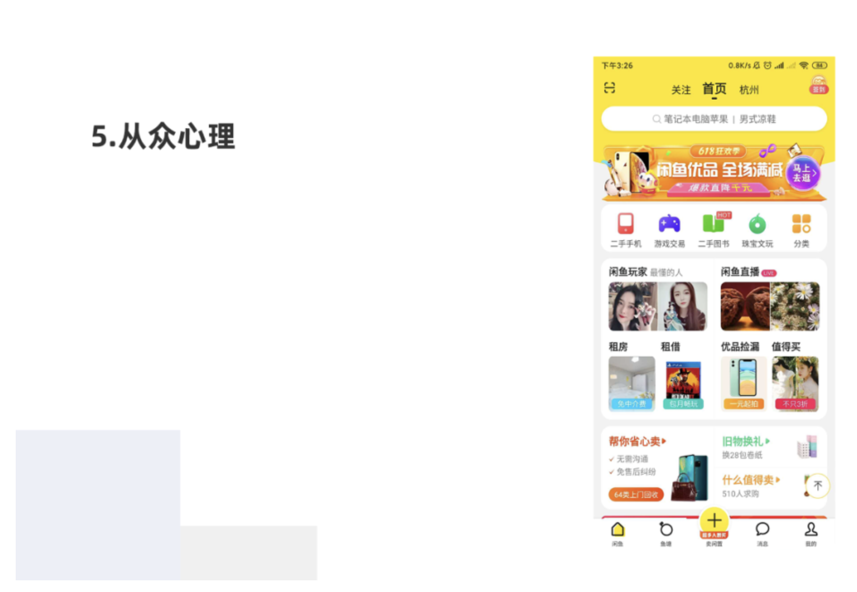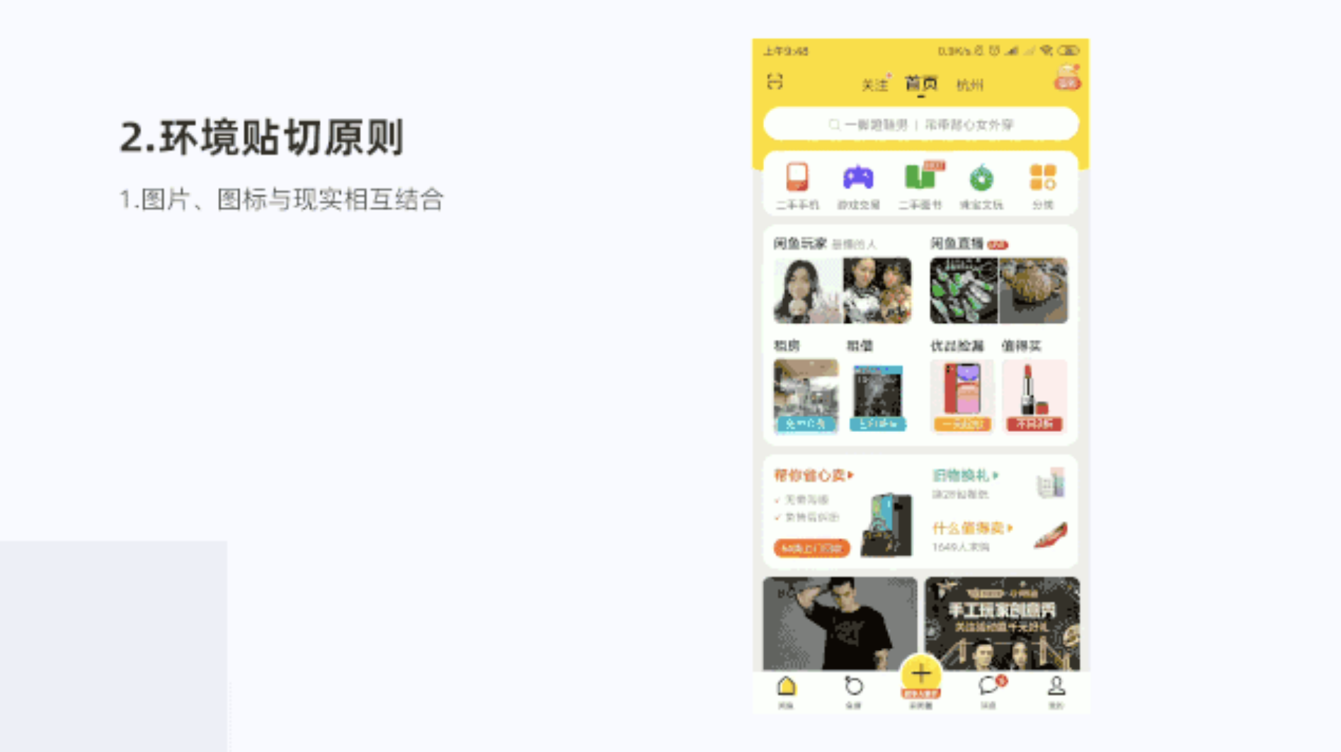 今天我們主要從用戶體驗的部分原則來看閑魚,主要以產品視覺設計四大原則、交互設計十大可用性原則、情感化設計來看閑魚