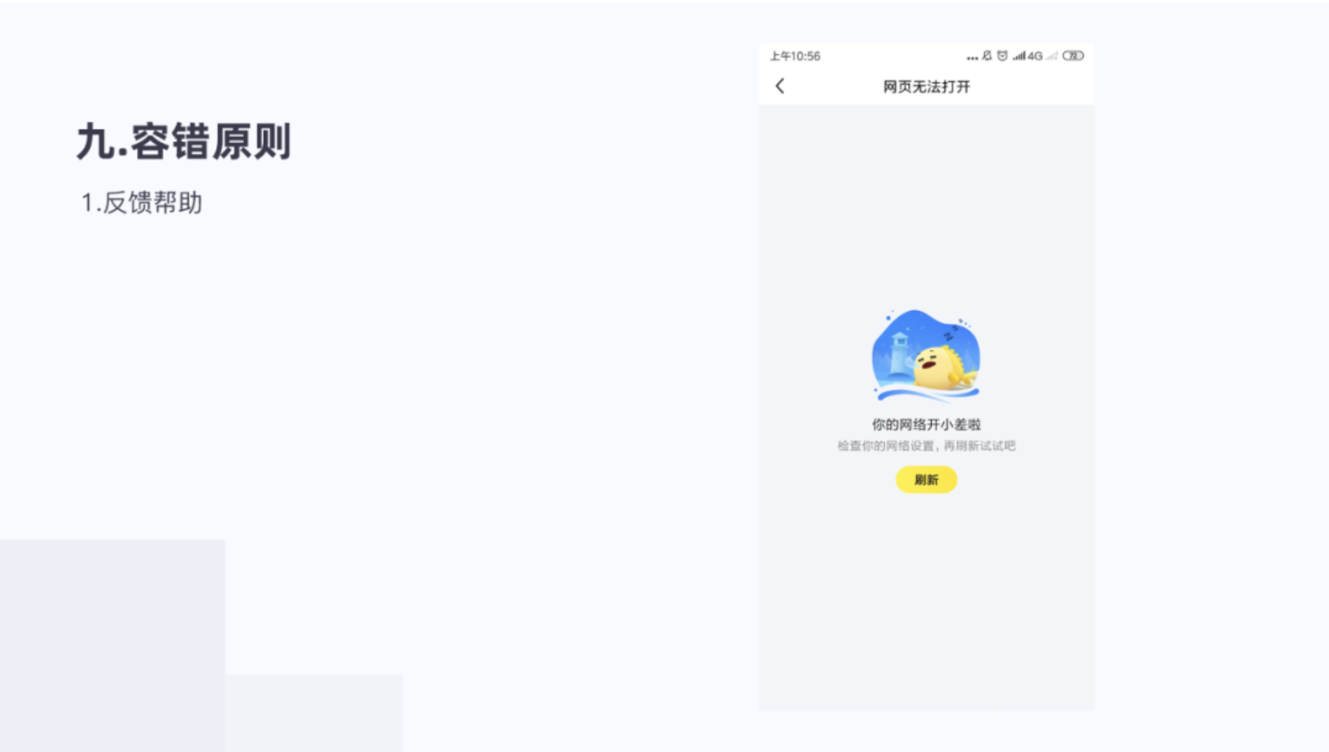 當頁面缺失時,畫面出現可愛的卡通缺失頁,產生情感共鳴,同時減少了用戶的認知負擔,讓用戶知道了所處位置和過程。