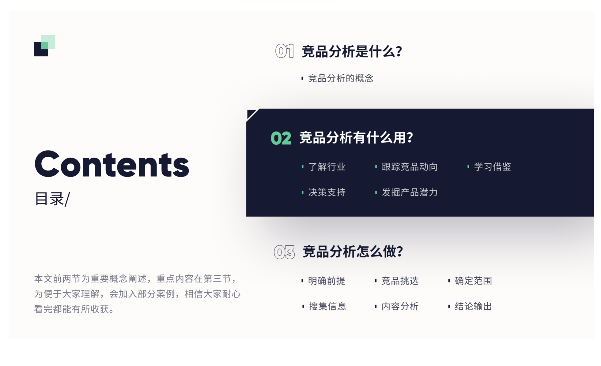 - 競品分類:根據(jù)分析目的選擇不同類型的競品。