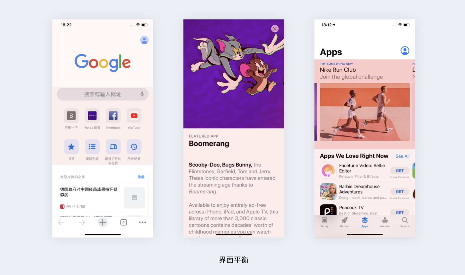 - 界面平衡:確保正負元素比例合適,如 Google 首頁布局給人穩定平衡感。
