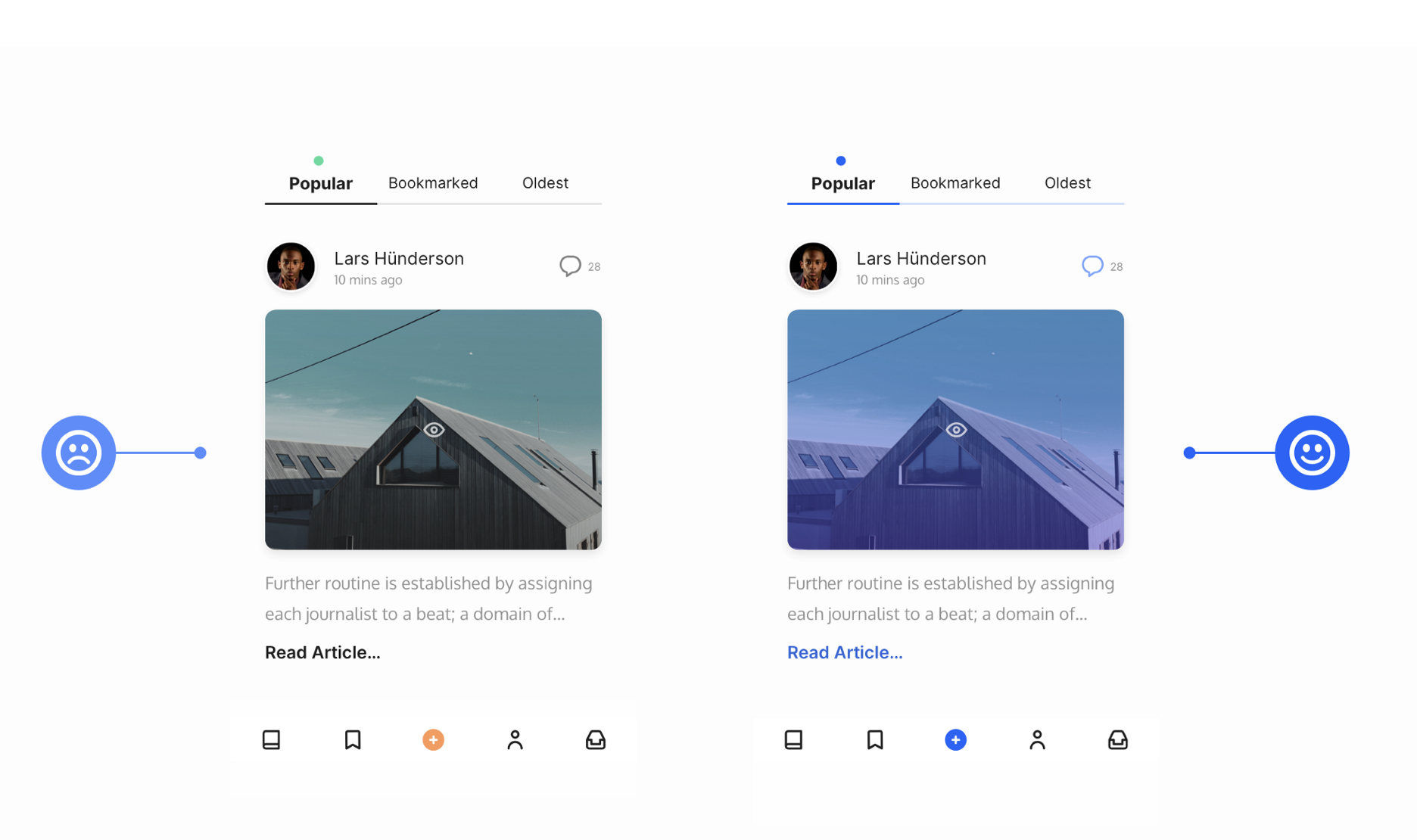 設(shè)計(jì)時(shí)無需用多種顏色填充,若項(xiàng)目允許,只需使用固定色板,選擇一種基礎(chǔ)色,再通過調(diào)整色調(diào)和顏色深淺,就能為設(shè)計(jì)增加一致性。