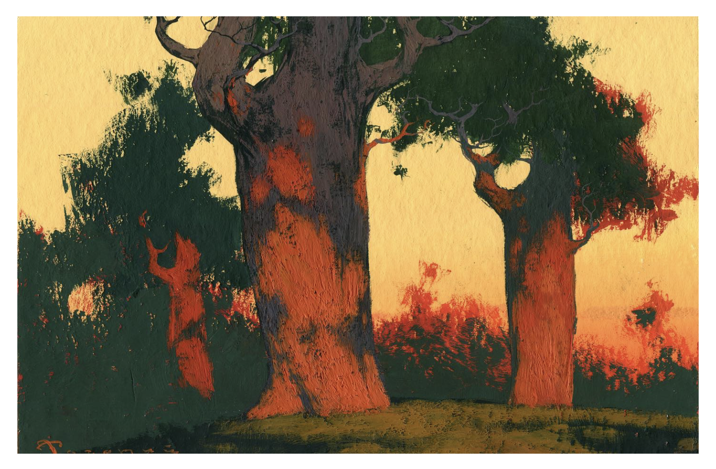Artem Rohovyi 的創(chuàng)作核心,是對冬日枯樹的深度描摹。在他筆下,枯樹不再是生命凋零的象征,而是冬日浪漫的 “骨架”。