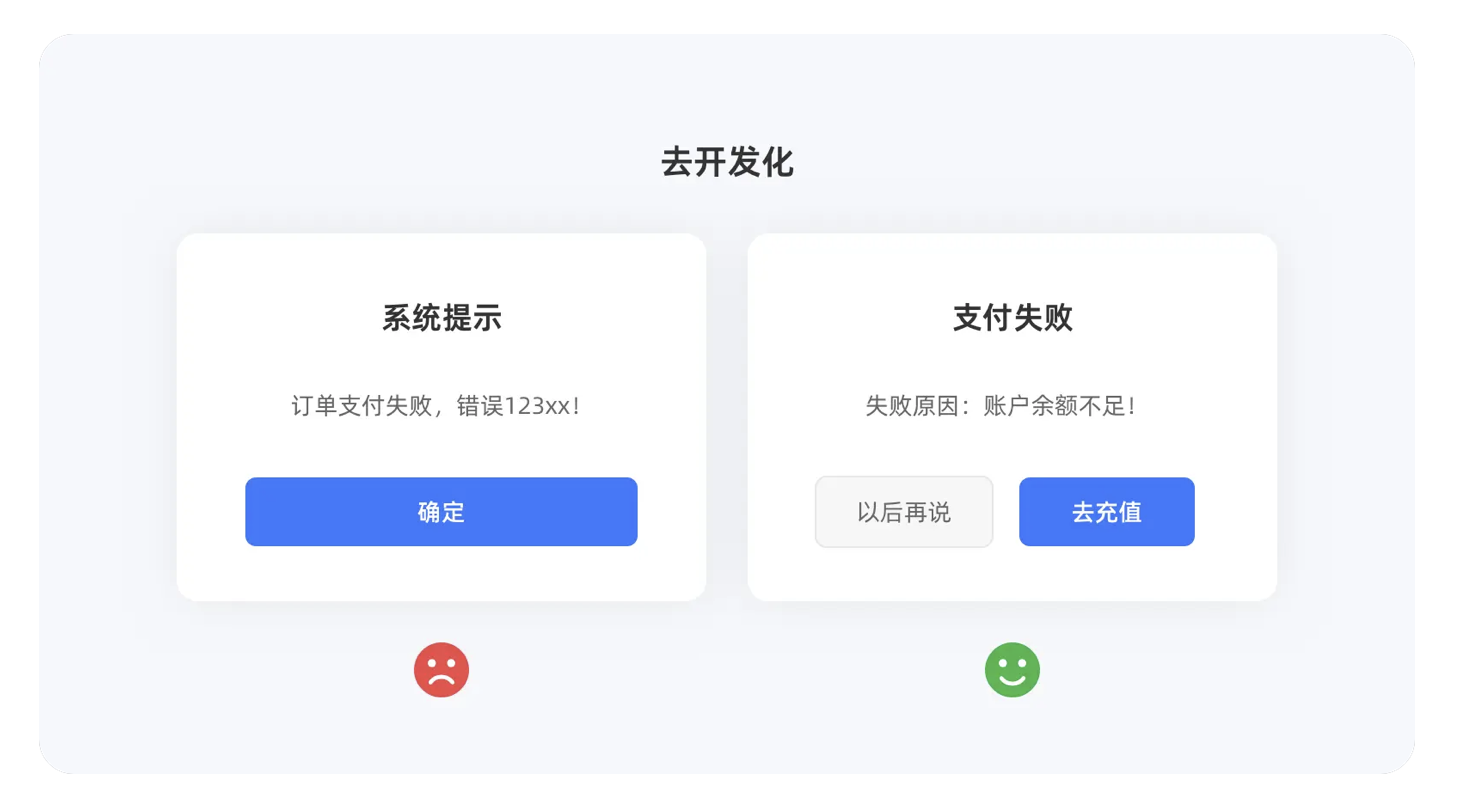 • 拒絕負面詞匯:避開 “不要”“不能”“失敗” 等詞匯,用正向表達替代,“暫未找到結果” 比 “沒有符合條件的內容” 更溫和。