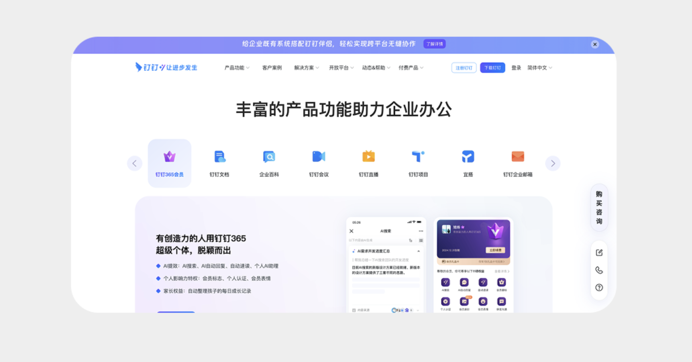 將圖標(biāo)與文字上下排版,搭配圓角矩形背景標(biāo)識選中狀態(tài),既能提升頁面豐富度,又能讓用戶快速識別功能。這種設(shè)計在工具類、辦公類產(chǎn)品中尤為適用,比如釘釘?shù)墓δ軜?biāo)簽頁,用簡潔圖標(biāo)搭配 “釘釘文檔”“企業(yè)會議” 等文字,既清晰傳達(dá)功能,又讓界面更具設(shè)計感,降低用戶認(rèn)知成本。