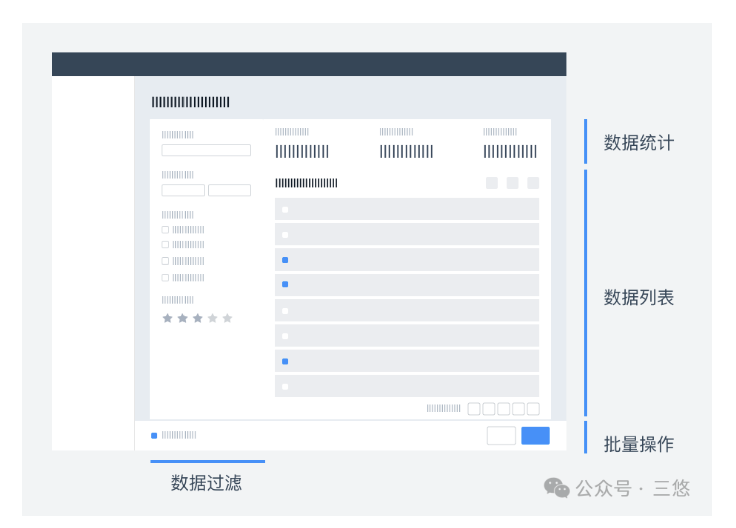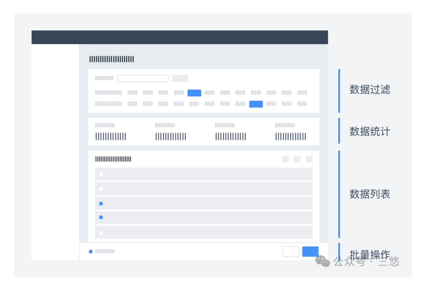 - 數(shù)據(jù)列表區(qū)域占頁(yè)面主要視覺(jué)空間,列數(shù)控制在 3-5 列,避免信息過(guò)載;