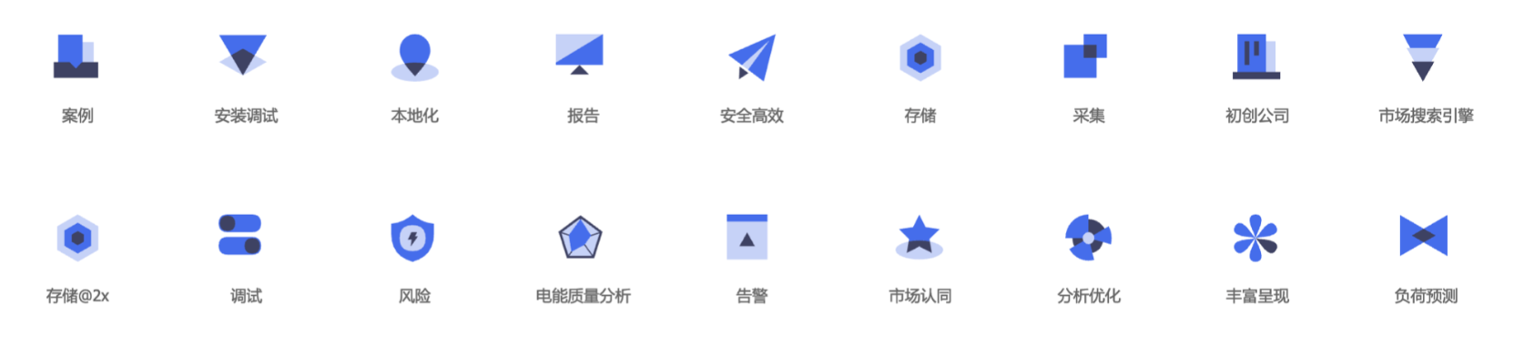 面性圖標(基礎(chǔ)款):以純色填充為主,造型簡潔、分量感強,傳遞穩(wěn)定、安全的感覺。適合企業(yè)服務(wù)、工具類產(chǎn)品,比如指揮中心、綜合管理、個人賬號管理等功能模塊。使用時要注意與其他界面元素的體量平衡,避免因過于厚重破壞信息層級。