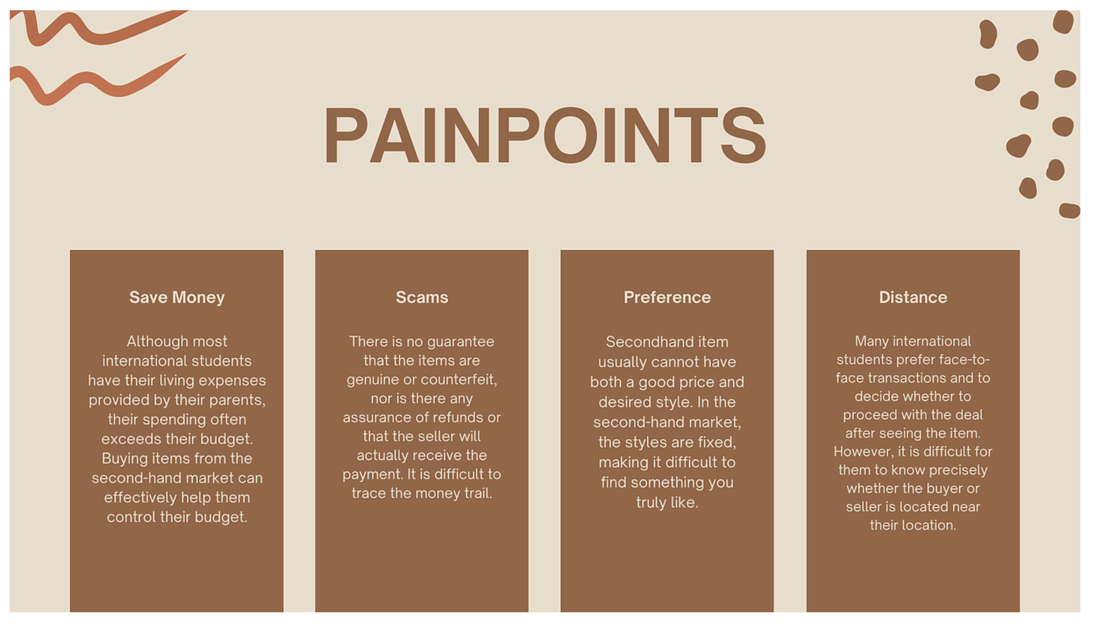 - 深入挖掘留學生在二手商品買賣過程中面臨的核心痛點,明確其在交易安全、價格評估、溝通效率、物流適配等方面的具體需求;