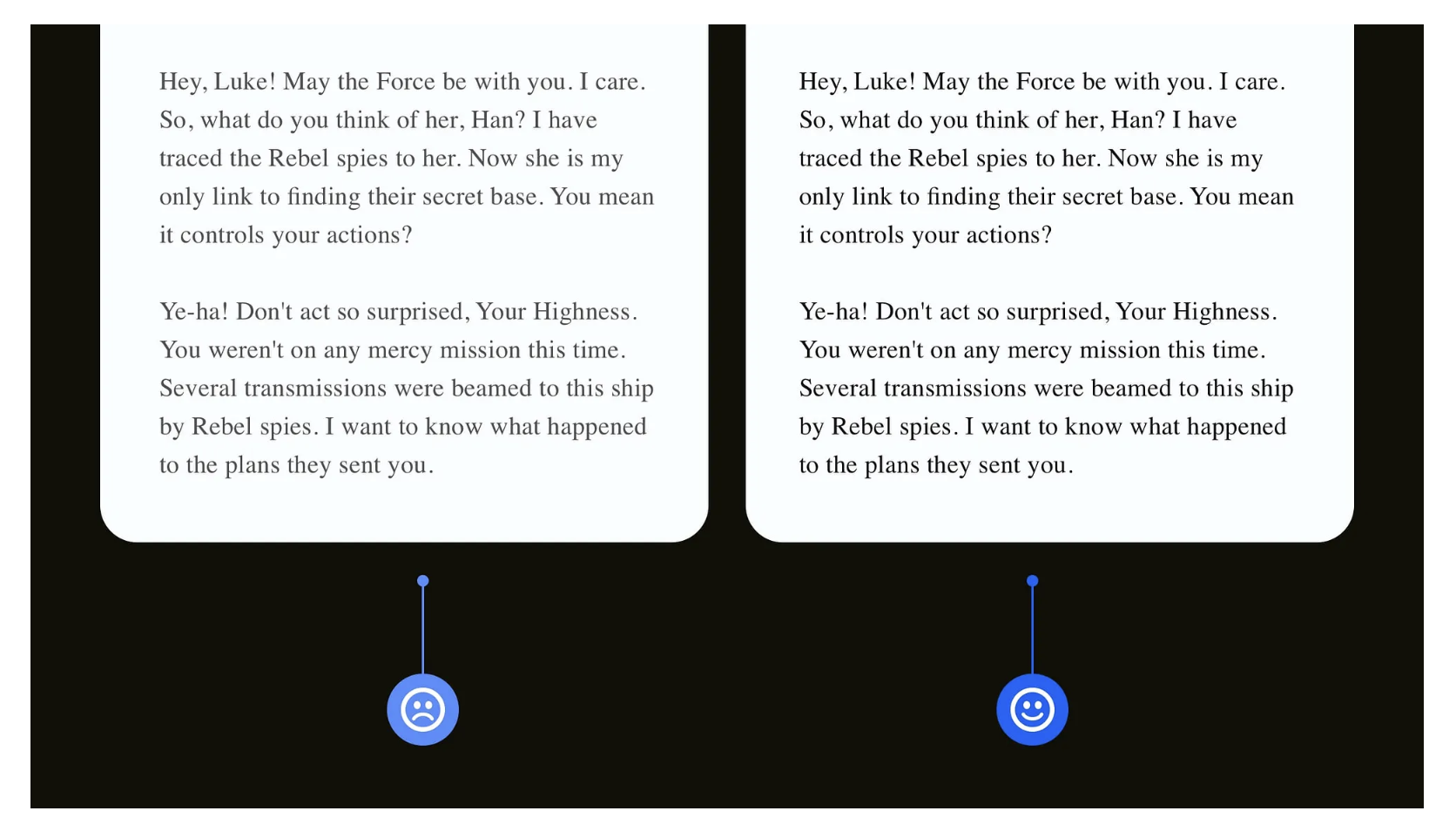 不少設計師為了追求簡約高級的視覺效果,會給大段文字用淺灰色系。但這種設計在不同尺寸的屏幕上,會嚴重降低文字的可讀性。