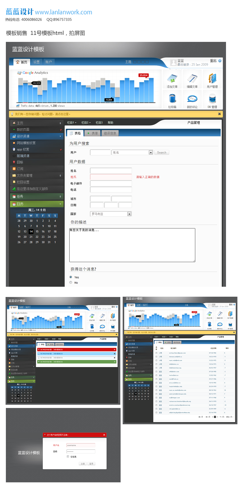 內容:包含登錄頁、列表頁、輸入頁、目錄頁共4頁,html、images/css/div