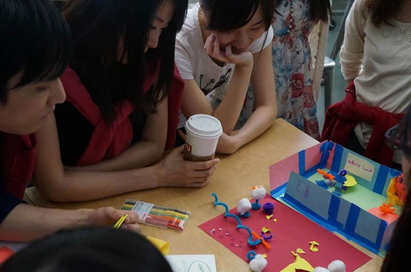 (利用各種材料做手工,展示給別的同學看,Photo by Tatsuhiro Ohtani ,VIA同事)