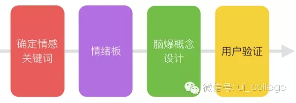 確定情感關(guān)鍵詞 -> 情緒版 -> 腦爆概念設(shè)計(jì) -> 用戶驗(yàn)證