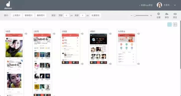 Demoo是基于web設(shè)計搭建的一款在瀏覽器內(nèi)進(jìn)行可視化操作的工具。通過上傳平面稿件,用手勢或觸點熱區(qū)的方式把界面關(guān)系連接起來,加入連接轉(zhuǎn)場,輸出一份仿真APP的、可體驗操作的設(shè)計方案,滿足在電腦、會議投影現(xiàn)場及手機上體驗操作。點擊這里可查看更詳細(xì)介紹:《為移動端方案設(shè)計演示而生的DEMOO》