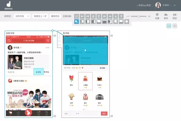 最后,聽說很多試用過的朋友都在詢問,如何在Demoo中模擬浮層的效果,Demoo其實更擅長的是頁面之間的跳轉(zhuǎn),那么如何模擬呢?這里給大家一個小技巧。