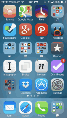 Apple iOS系統(tǒng)的UI設(shè)計(jì)中就很好的利用了這些有意義的過(guò)渡動(dòng)效。下面的案例中,用戶點(diǎn)擊文件夾或者APP,圖標(biāo)當(dāng)大擴(kuò)展到整個(gè)屏幕,展現(xiàn)出細(xì)節(jié)和詳情。