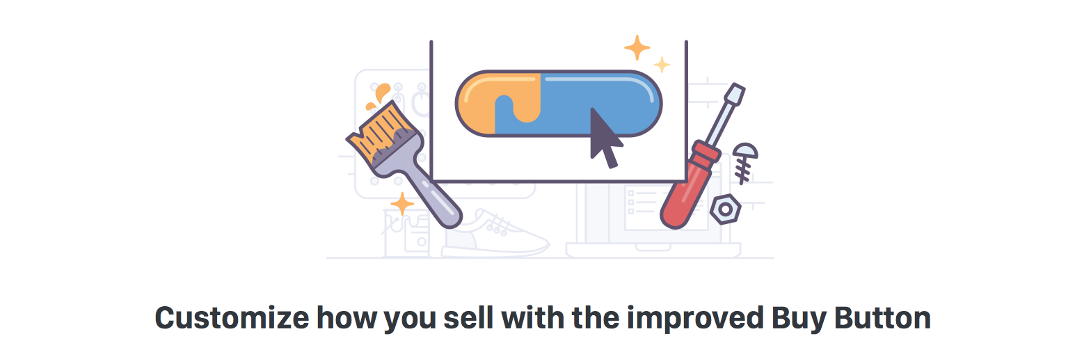 這個元素與那個元素融合,就能表達我們想要傳遞的內容。可能這類比喻使用起來需要更老道的經驗,但在產品插畫里的確更受重視,或者說一般設計都會考慮它,因為它是讓用戶獲知你的產品或功能賣點的捷徑。如下圖所示,沒錯,你知道我們提供了“購買”的按鈕,但瞧瞧旁邊擺放的畫筆,基于對畫筆的了解,你就會明白你能定制“購買”按鈕的顏色。將刷子的功能與按鈕的功能混合起來,刷子可以自定義顏色,因此我們的按鈕也可以。與品牌和營銷設計一樣,這種比喻在圖標設計中也時常出現。