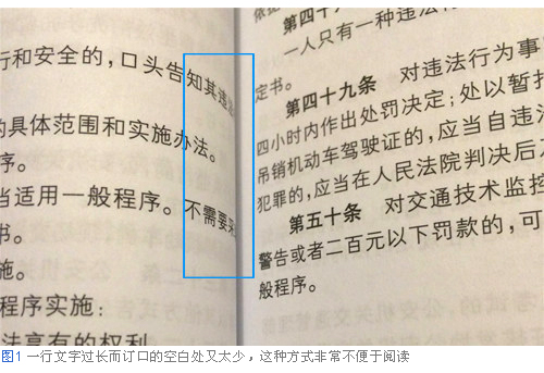 在設計工作中,如果有100個人就會有100種設計理論,我認為并不能總結出一條絕對正確的理論。但是,如果完全沒有什么設計理論的話,貌似會使設計顯得很奇怪。比如,經常會看到這種書籍(圖1),一行文字過長而訂口的空白又處理得不太合適。只要看到這樣的設計,馬上就會想到“這里好像沒有規則啊”,還會讓人產生“這本書的設計師好像不讀書啊”這樣的感覺。在閱讀過程中哪怕只有一些地方令人難以理解,也會讓人精神不集中,不能徹底關注文章本身。如果是一個讀書的人,他自己看看這樣的設計,自己也會感到這種方式不便于閱讀啊。所以我認為電子書的閱讀感受也是這樣,要做出理想的版面,作為設計者需要站在讀者的角度考慮,應該尋找對于自己來說便于閱讀的排版。因此,也借此機會來整理出網易云閱讀產品中,書籍正文文字排版的相關規則。
