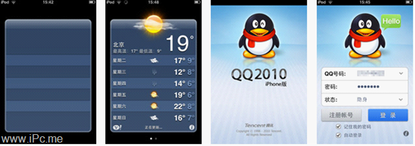 運行天氣應用和iPhone QQ時,即使是很短的啟動時間,預加載背景還是能夠讓人感覺啟動等待的時間縮短了。